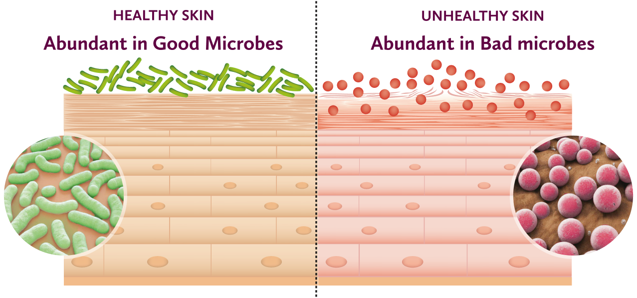 Good microbes are our skin's best friends. We have trillions of microbes on our skin, many of which are beneficial. A well-balanced skin microbiome is vital to skin health. When our skin microbiome is out of balance and lacking certain good microbes, issues like Eczema can flare up.